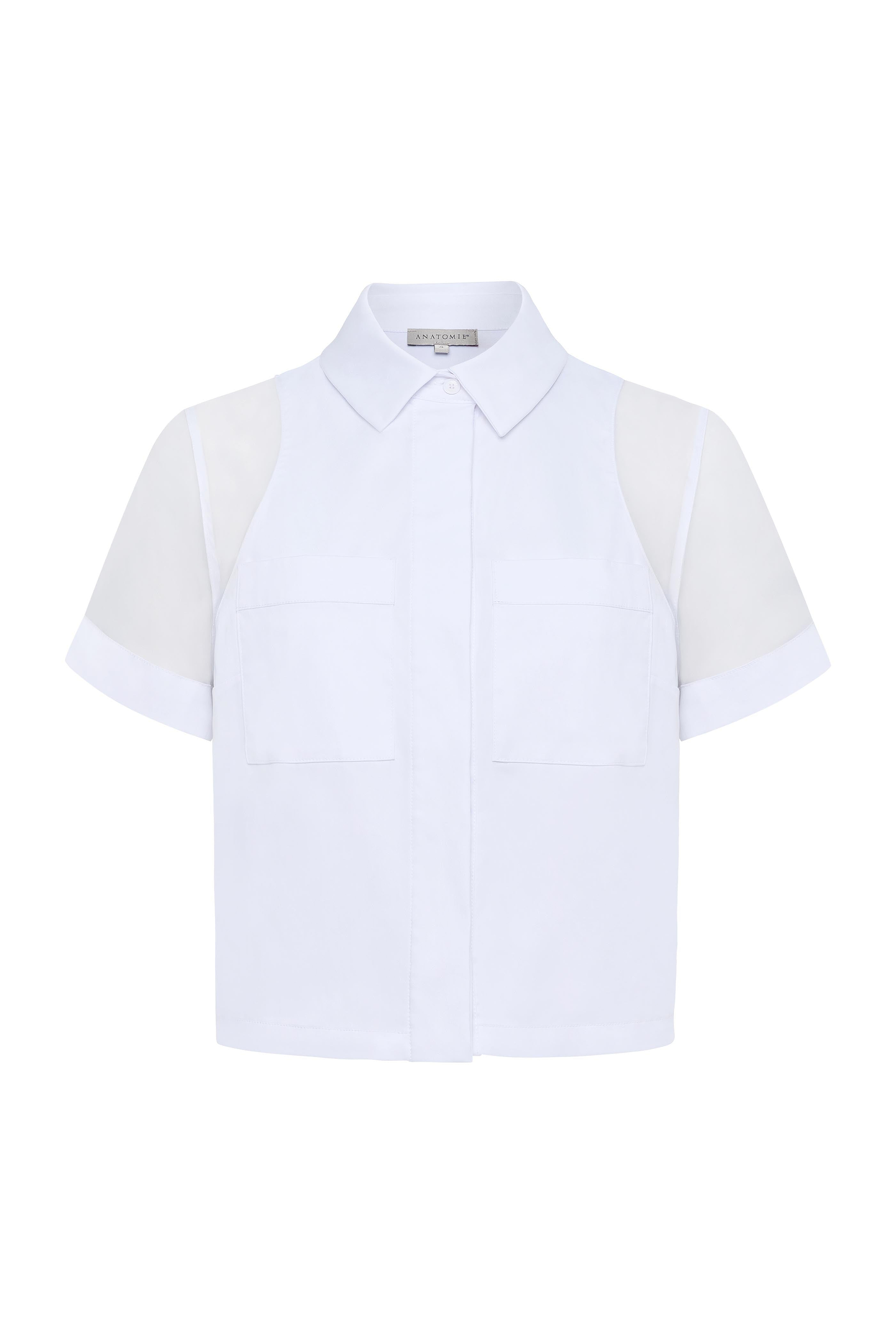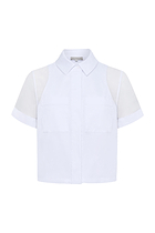 Effortless elegance meets versatile style in this refined button-down shirt. Crafted from a sophisticated blend of stretch poplin and delicate organza,...