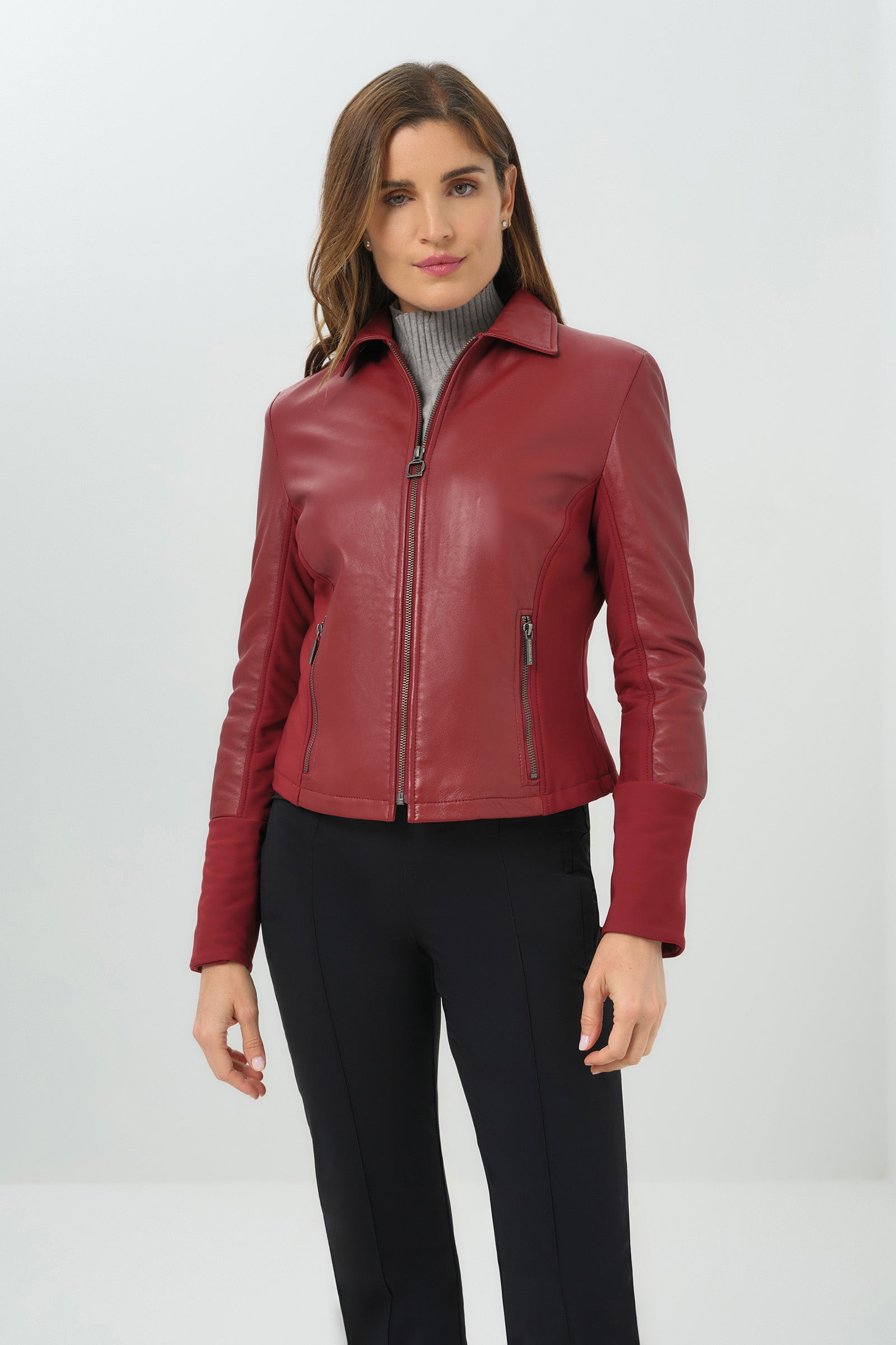 The Dill Leather Jacket features a slim fit silhouette with a classic fold-over collar and long sleeves. It is accented with...