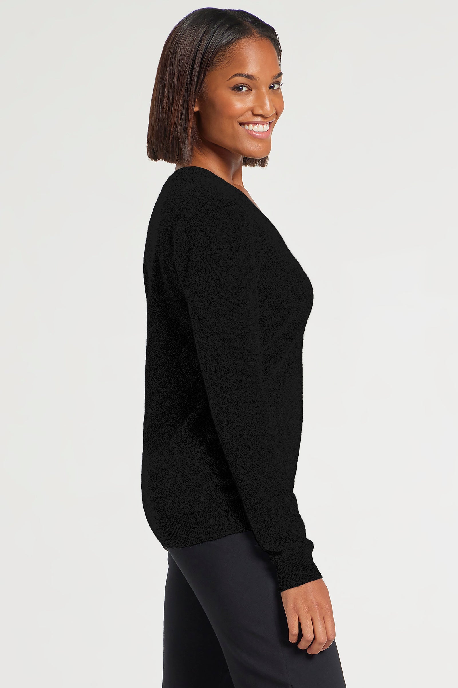 Cozy up to the perfect seasonal design with the Etta V-Neck Cashmere Sweater Top. This stylish women's cashmere sweater is designed...