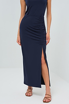 The Olivia Super Jersey Maxi Ruched Slit Skirt combines elegant draping with luxurious comfort. Expertly ruched detailing creates a flattering silhouette...